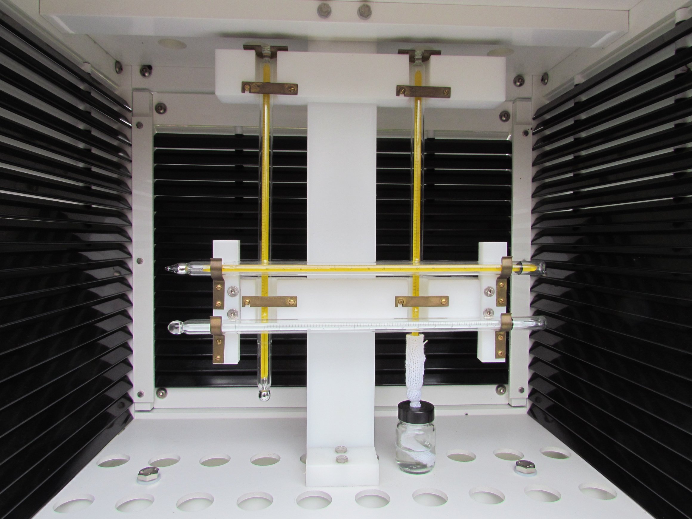 The multipoint fine adjustment for pressure and the final pressure calibration of the PTB220 Class A barometers is done using a manual Ruska 2465 dead-weight tester. The multipoint fine adjustment and calibration of the Class B barometers is done automatically using electronic working standards.